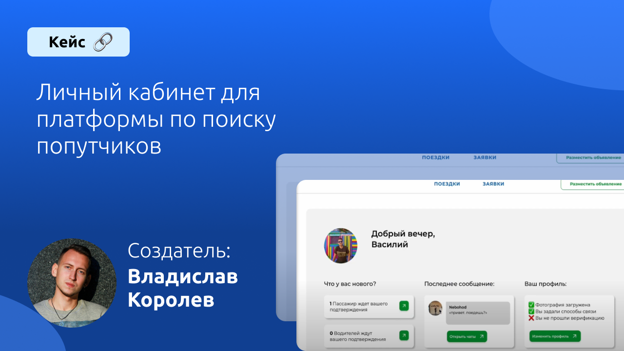 Моей задачей было разработать функционал платформы. Сайт должен выполнять следующие функции: автоматизированный процесс регистрации, возможность забронировать и рассмотреть пассажира, чат между водителями и пассажирами, изменение личного профиля, гибкий поиск поездок, фильтрацию поездок, динамическую страницу с контентом поездки, отметку промежуточных городов, управление данными поездки, загрузку документов для верификации, восстановление пароля, оставление отзывов, публикацию заявок, модерацию объявлений, уведомления по почте и подтверждение/отклонение брони и предложений из писем.
