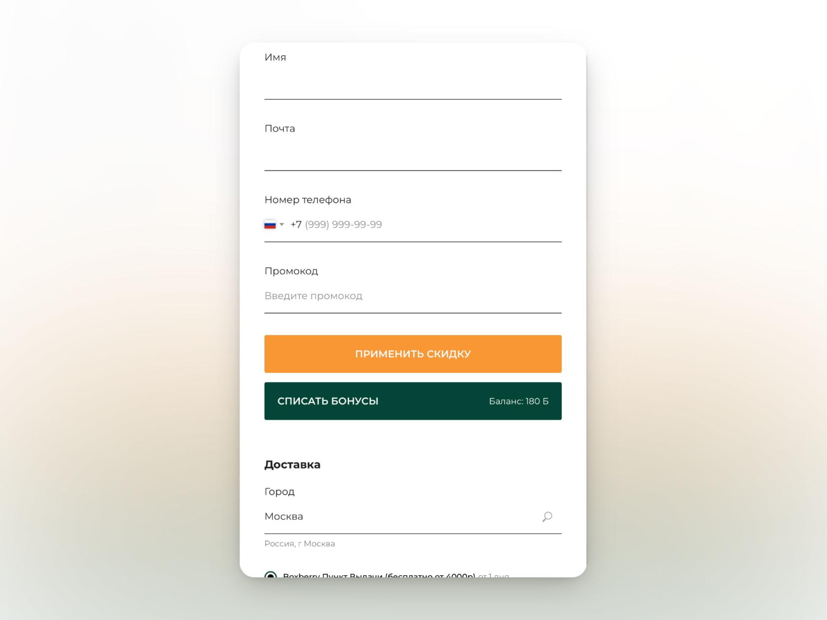 В заказе возможно использовать только 1 вид скидки: промокод / персональная скидка / бонусы. Для активации достаточно кликнуть на нужную кнопку.